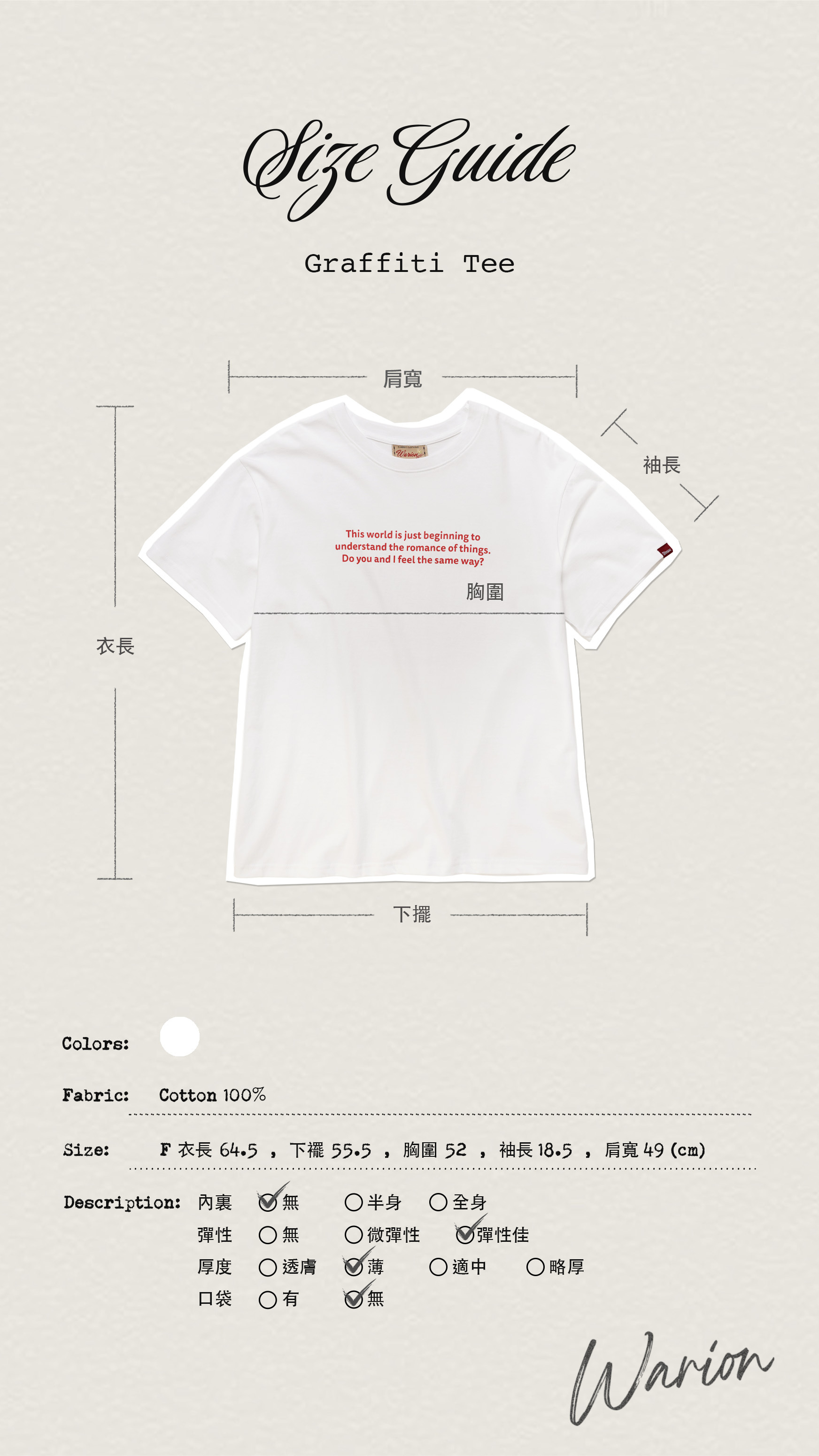 這是一款關於自由的寬鬆印刷Tee,表達了WARION對於世界的態度。