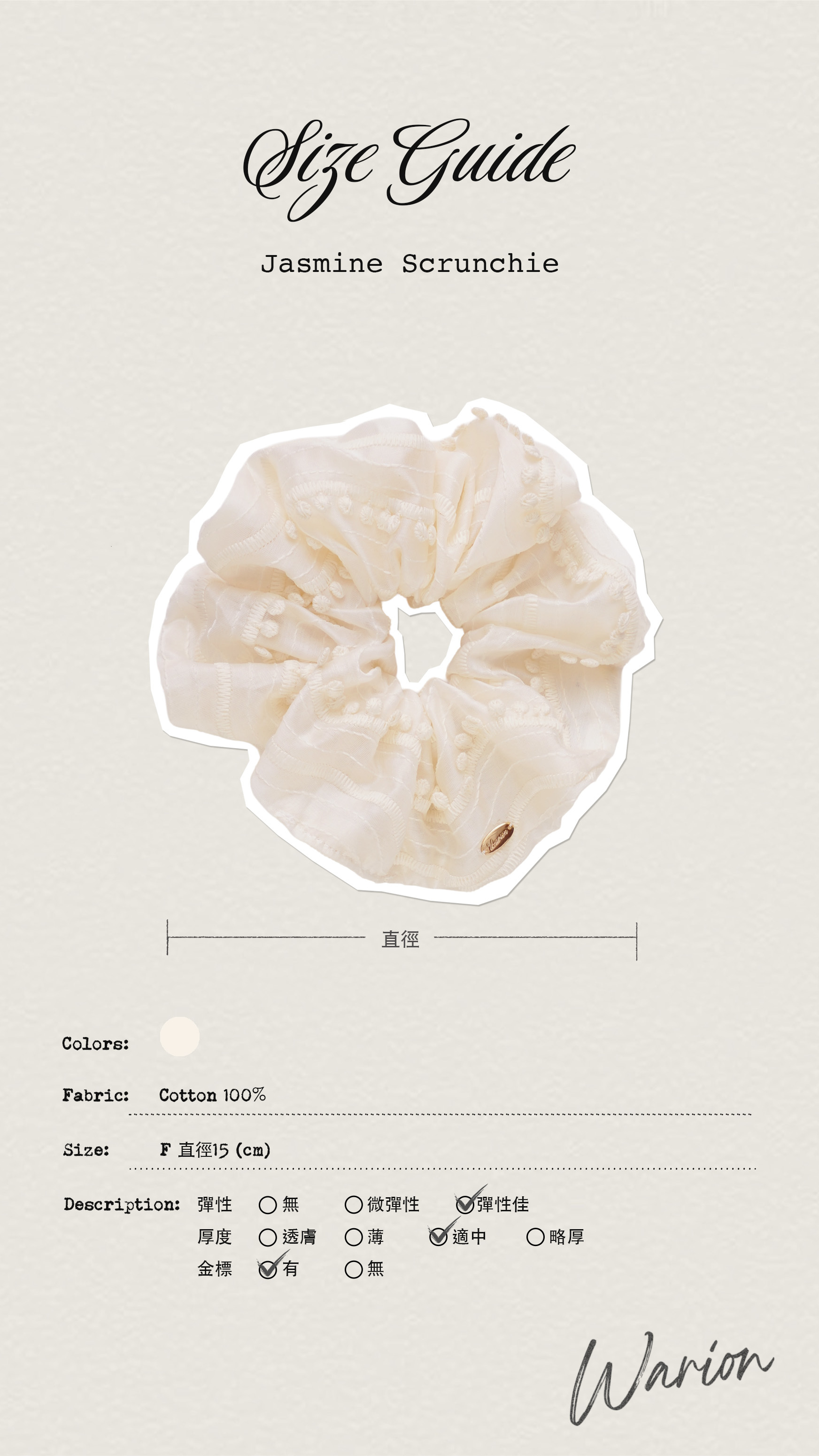 像一朵剛綻放的茉莉花,Jasmine Scrunchie 瀰漫著清新柔和的氣息。