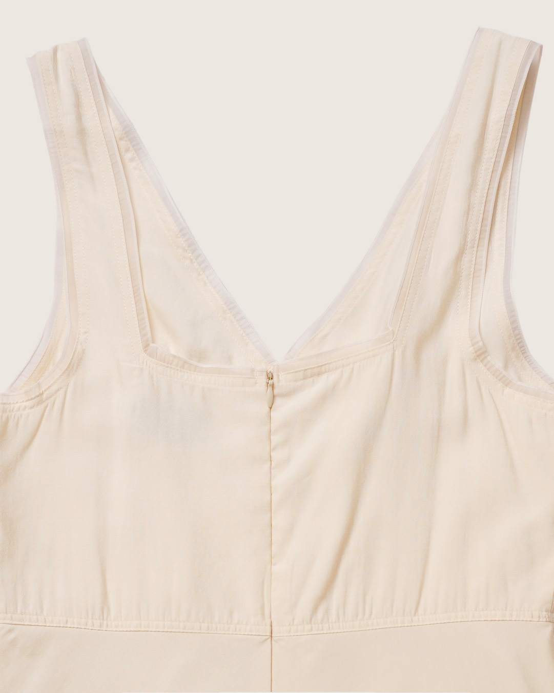 流動的剪裁設計與優雅的V領,可完美展現柔美身形。每一個細節都極具設計感。