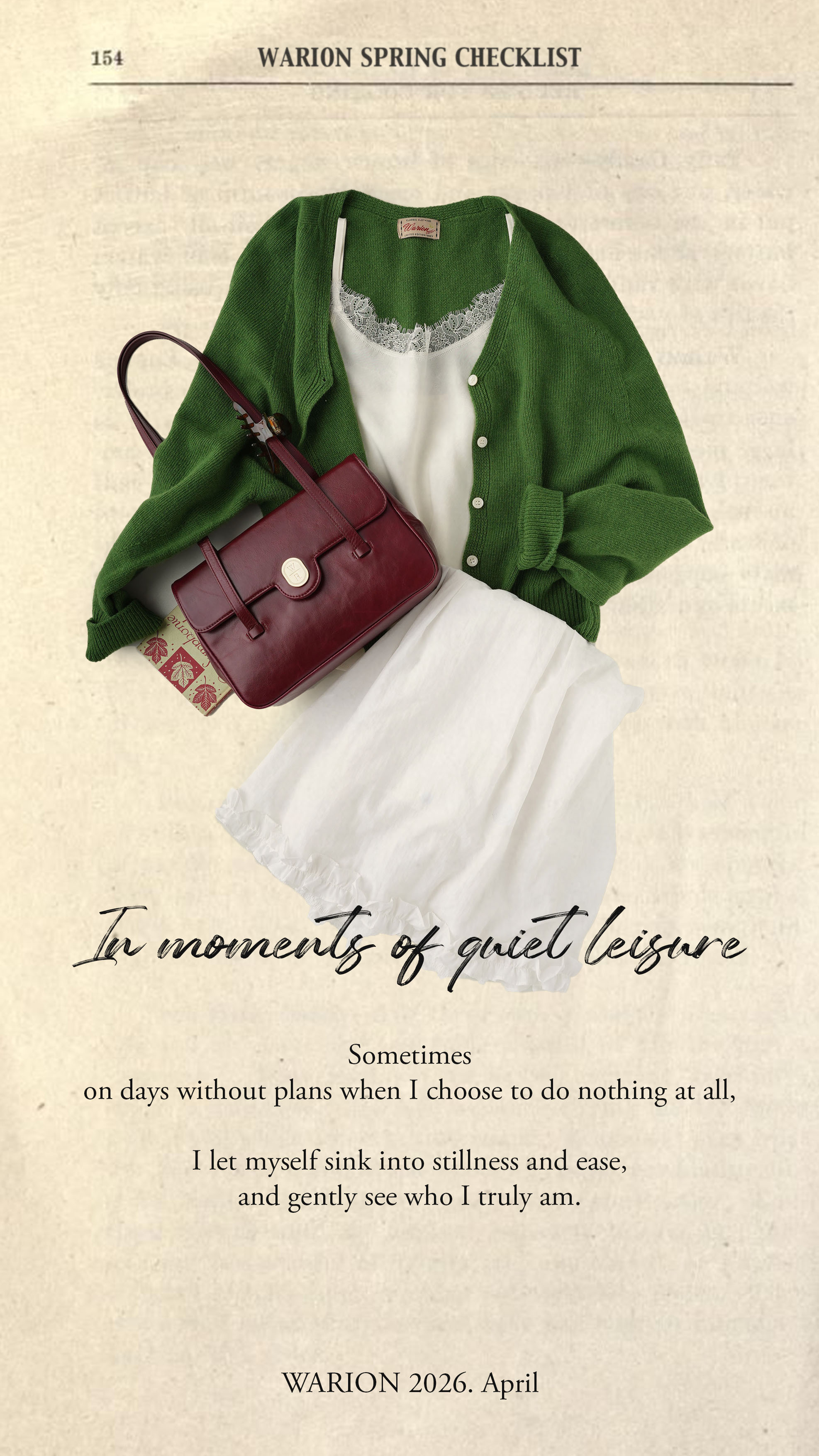 Olive Cardigan 選擇帶有微絨感的針織面料,色澤如熟成橄欖般濃郁且具備生機。紮實的面料質地包裹著適度的空氣感,觸感柔軟親膚,在微冷的天氣裡給予妳最溫柔的安定感。優雅的 V 領設計搭配質感排釦,在視覺上修飾了頸部線條,也注入了一絲復古的知性美。落肩的寬鬆剪裁讓穿搭顯得從容不迫,無論是內搭簡約背心或是疊穿襯衫,都能散發出獨立、氣質與活力。