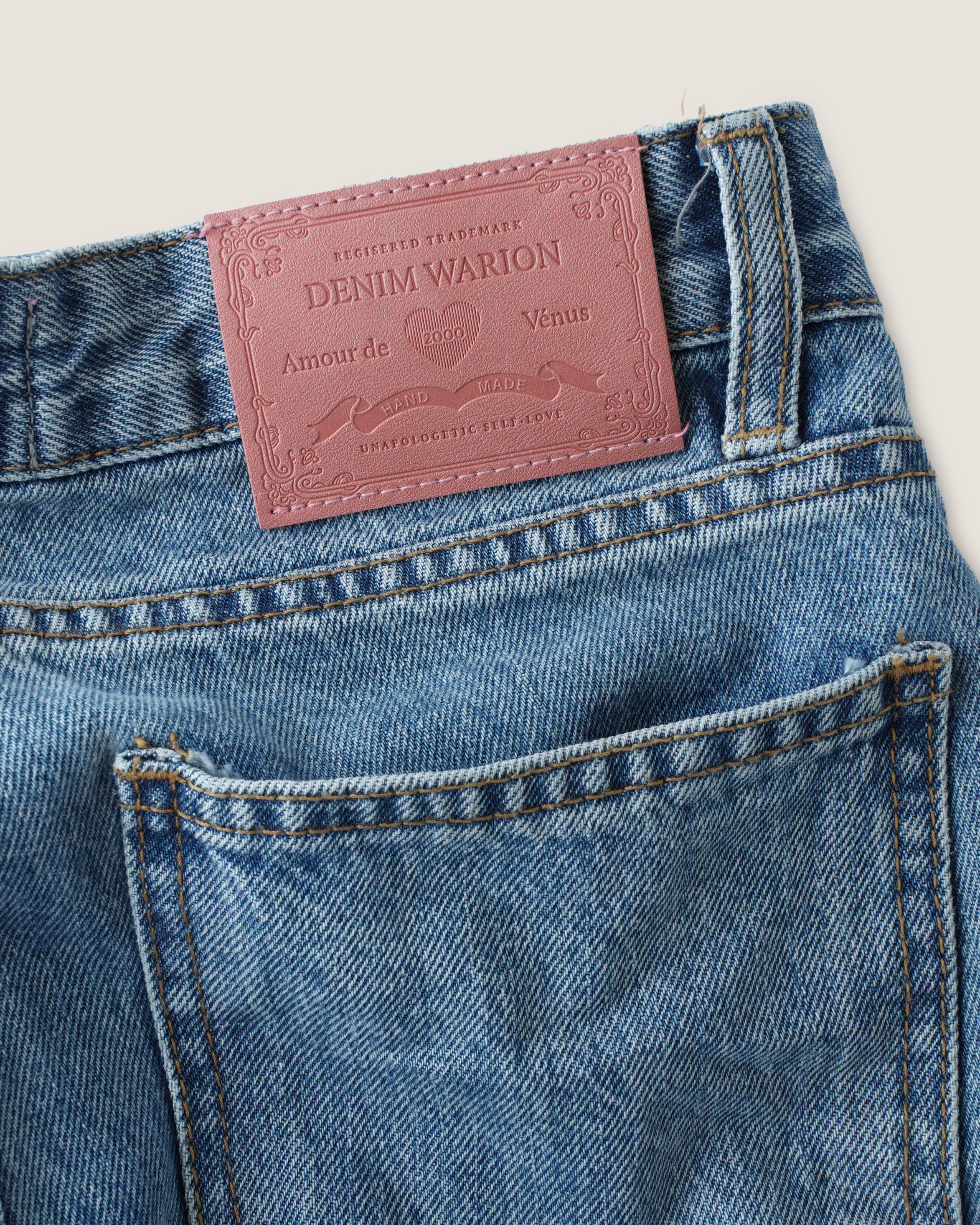 在後腰的位置,我們刻意放上一塊柔霧粉色皮標。帶有一種關於愛與自我凝視的隱喻。