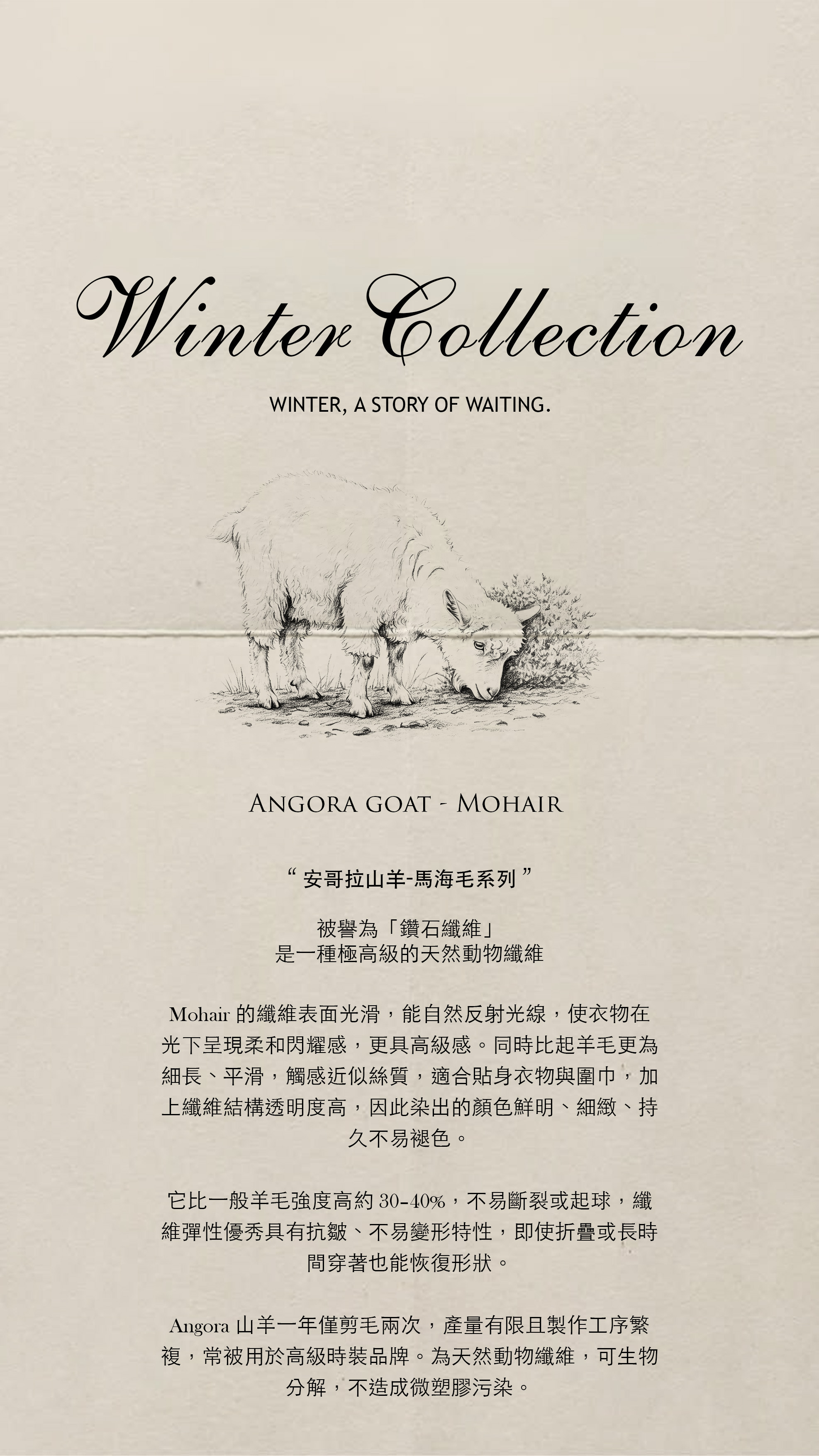 以柔軟的馬海毛織成,觸感細膩輕盈,帶著微微的毛絨感。