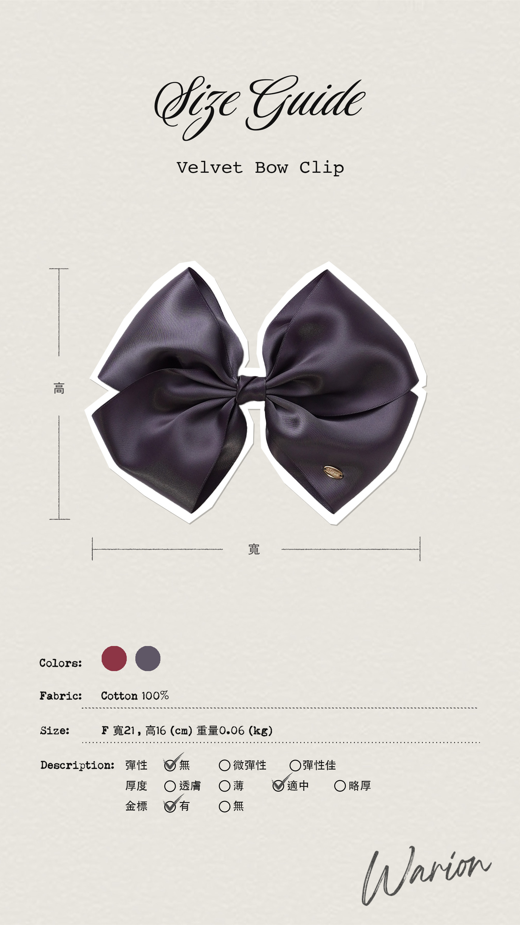 獨特的光澤和柔軟的觸感,讓Velvet Bow Clip成為每個精緻造型的亮眼點綴。